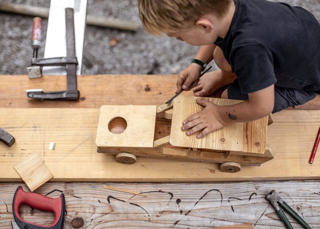 Activitat creativa i educativa per a infants que volen descobrir el món de la fusta d’una manera divertida i segura.
